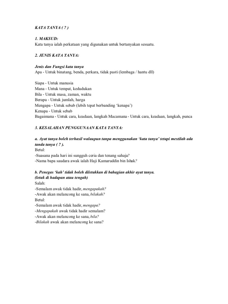 Contoh Ayat menggunakan Perkataan bertanya dalam bahasa Melayu.